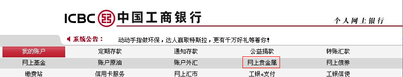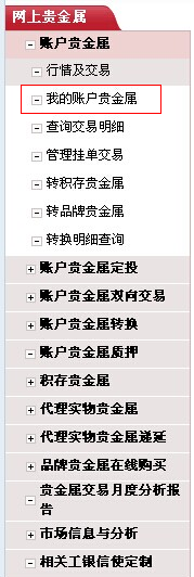 (2)点击网银左边导航条“我的帐户贵金属”,按步骤开户。 左边导航条: