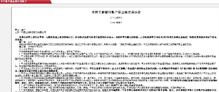 | 股市长期低迷,我们用什么来代替呢?贵金属投资近年来广受关注,但是对于这方面一窍不通的小白有点儿无从下手,表灰心,第一纸白银手把手教你玩转纸白银投资。 前几天有财蜜问我是否玩过纸黄金(白银),她说她最近在学习贵金属投资,准备学习完理论知识之后进行实际操作。哦,正好,我曾经试水过纸白银,还赚过一点点小零花钱。 一下第一纸白银给各位初学贵金属投资的财蜜介绍一下工行网银购买纸白银攻略。(注:工行纸黄金投资攻略同纸白银,但网上的各种现货白银投资的软文不可信,切记注意平台费用和风险!) 一、 购买纸白银前的准备工作 1、去工行开户,同时开通网上银行,取得U盾或密码器或口令卡等其中之一网银介质,目前密码器和口令卡是免费的哦,建议开通工行网银的时候选择密码器。 2、准备好投资资金,这个视自己的资金分配情况而定。 3、登录工行网银标准版,在“网上贵金属”栏目下开通贵金属投资帐户。具体步骤详见网银开户截图。 (1)登录工行网银,找到“网上贵金属”栏目,点开进入。